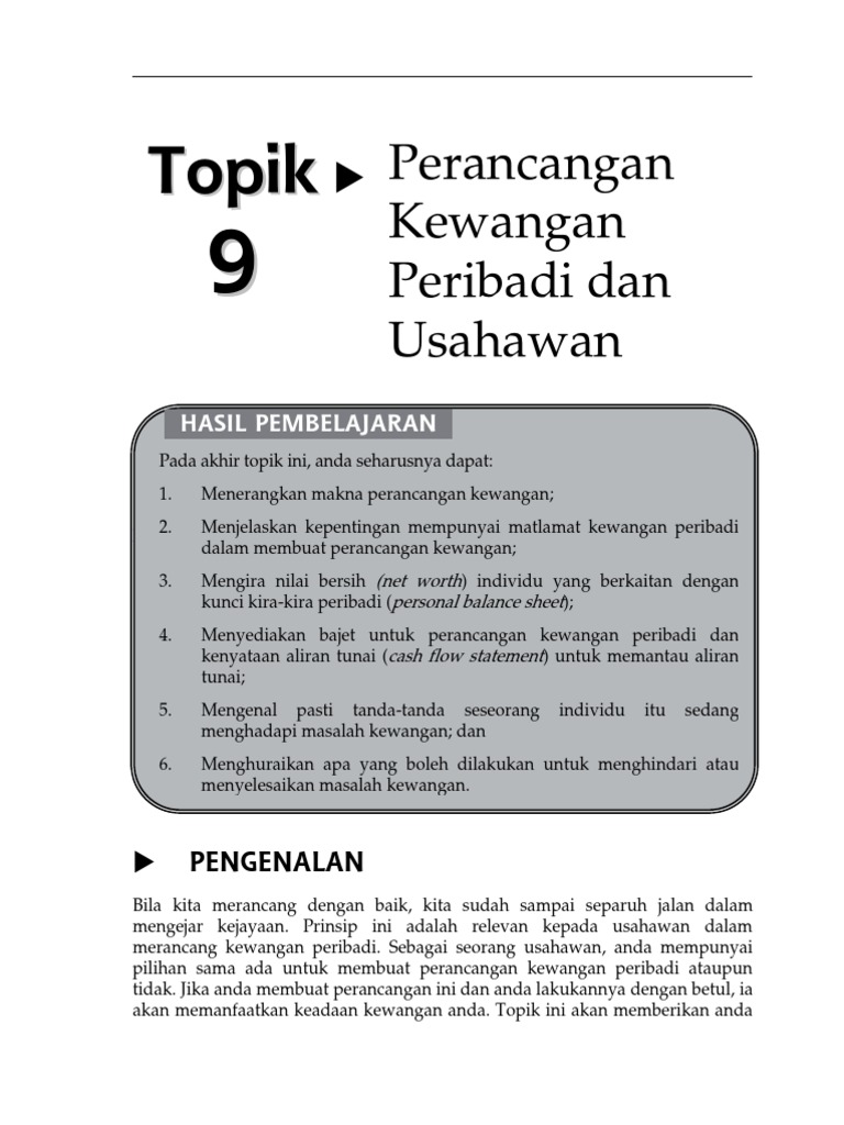 Topik 9 Perancangan Kewangan Peribadi Dan Usahawan Pdf Pdf